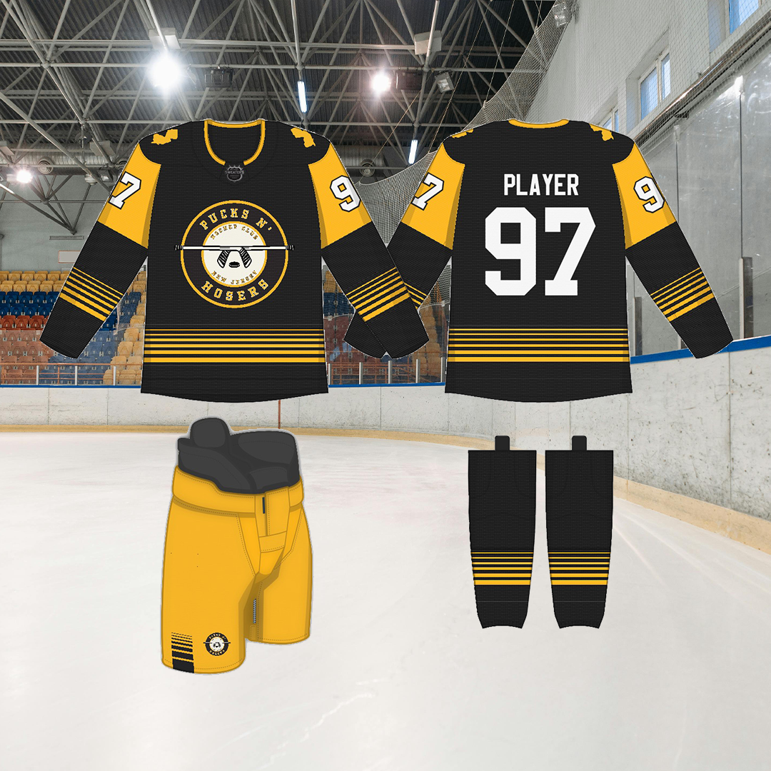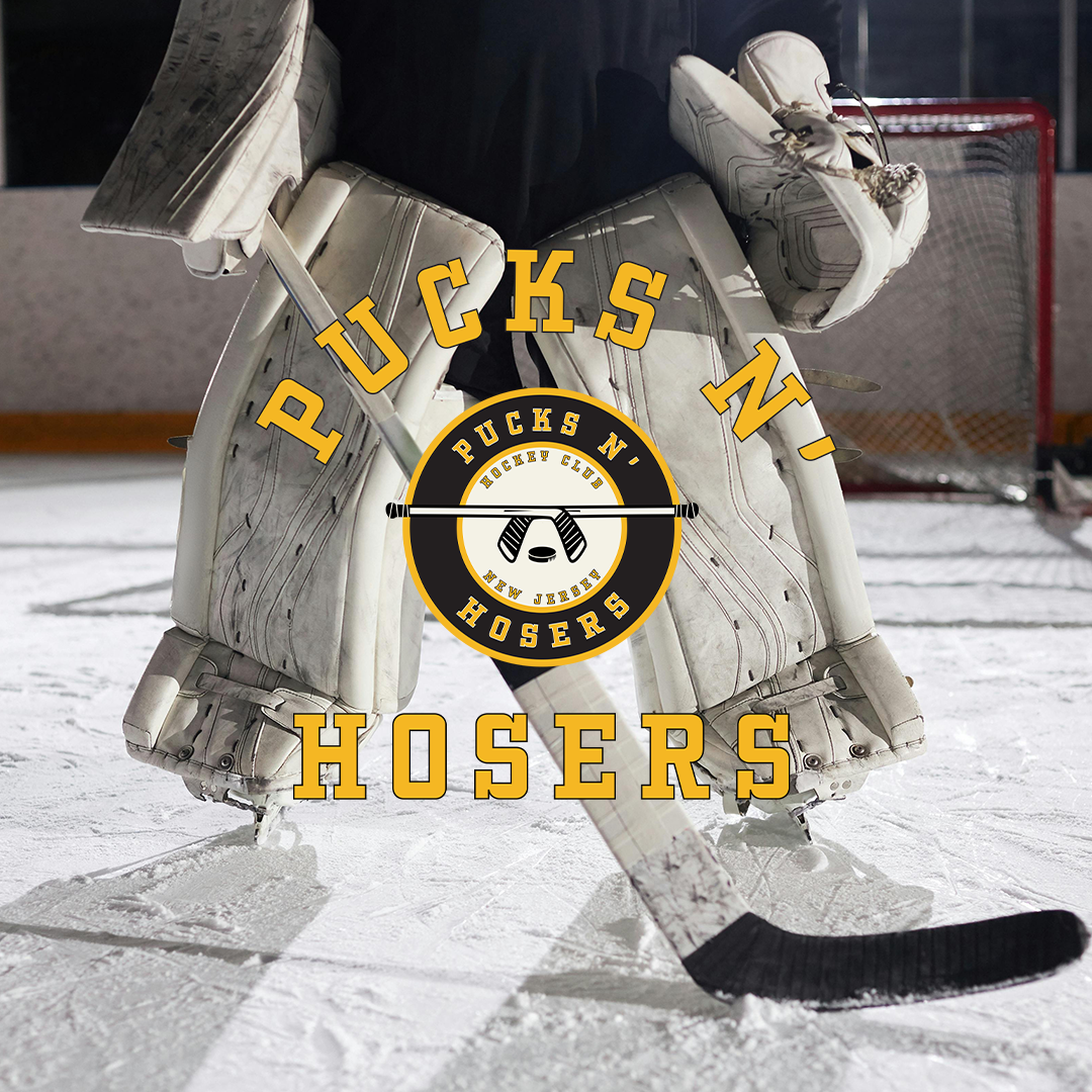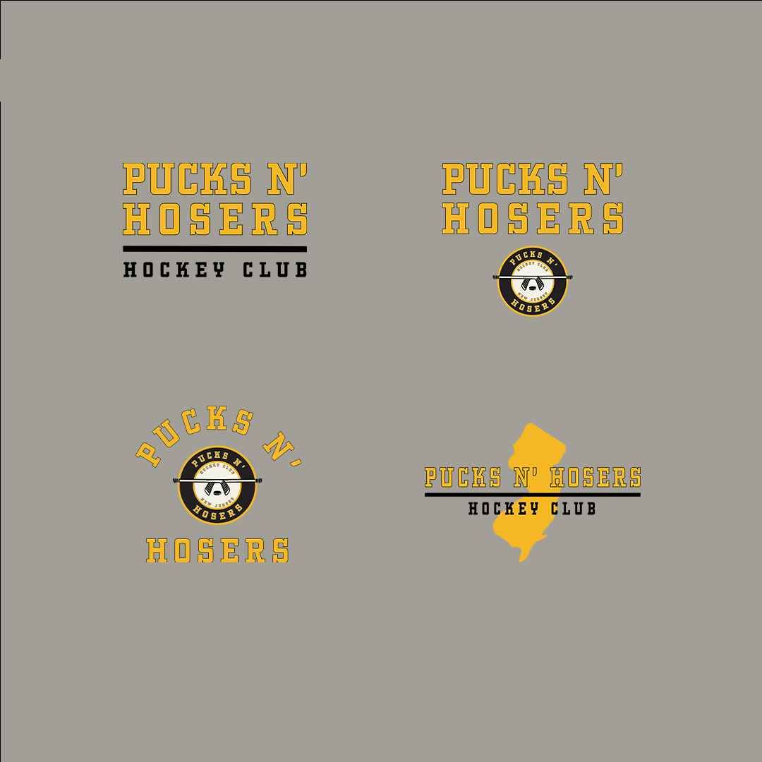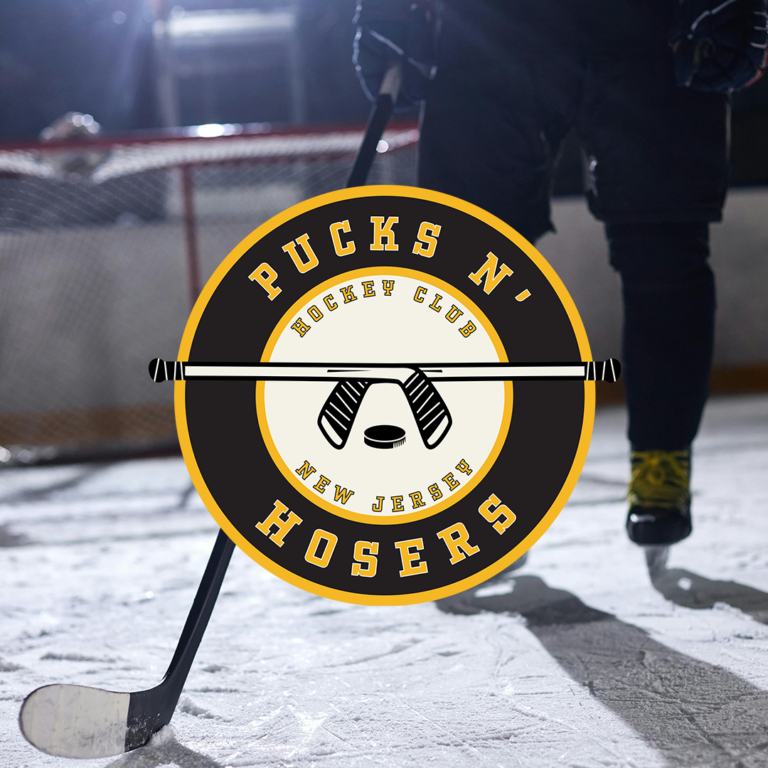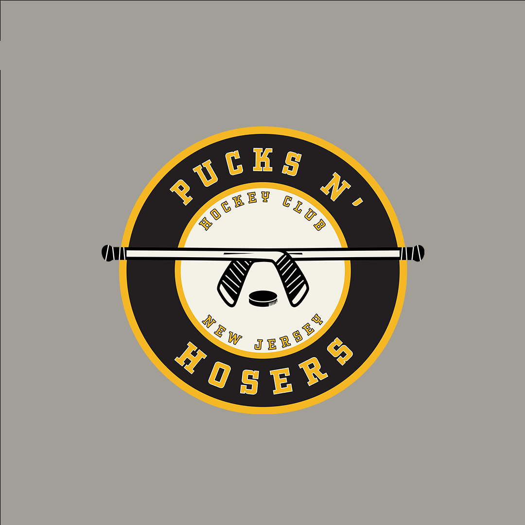 Pucks N Hosers is a beer league hockey team from New Jersey with a love for ice and loud guitars. The brief? Create a team identity that gives a nod to the rock band, Guns N’ Roses without feeling like cosplay. So I built a custom badge logo inspired by the band’s iconic mark, swapping guns for hockey sticks and roses for pucks, and gave it that gritty, frozen-over edge it needed to skate on its own.