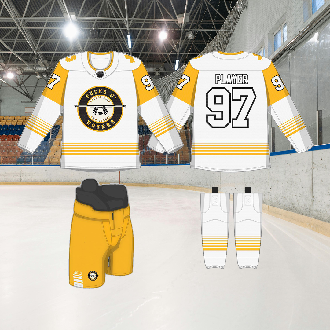 From there, I built a full logo system for merch, hoodies, hats, and tees, complete with alternate marks and a version that proudly reps the outline of the state. I capped it off with custom home and away uniforms designed to look good under arena lights or bar lights. It’s not just a team anymore. It’s a brand, born in Jersey, fueled by beer, and powered by rock and roll energy.